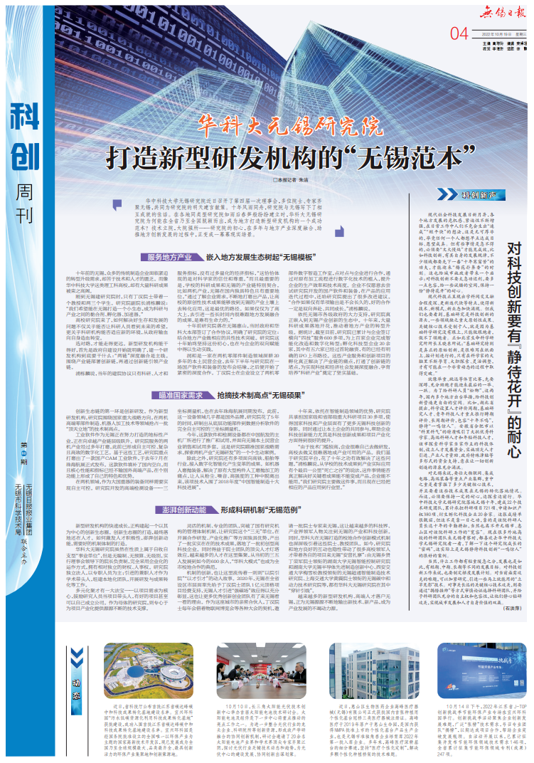 越來(lái)越多的新型研發(fā)機構、高端人才落戶(hù)無(wú)錫,正為無(wú)錫源源不斷地輸出新技術(shù)、新產(chǎn)品,成為產(chǎn)業(yè)發(fā)展的不竭動(dòng)力源。