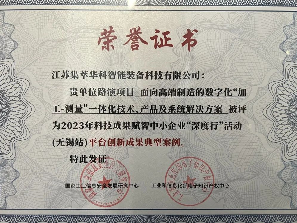 江蘇集萃華科智能裝備科技有限公司是由省產(chǎn)研院、華科大無(wú)錫研究院以及丁漢院士團隊2017年共建的混合所有制科創(chuàng )企業(yè),以“攻克皇冠技術(shù)、服務(wù)高端制造”為宗旨,專(zhuān)注于“加工-測量“一體化技術(shù),服務(wù)以航空航天、智能制造裝備為代表的高端裝備制造領(lǐng)域。公司先后參與10余項國家級重大項目,形成各類(lèi)知識產(chǎn)權100余項,榮獲省級以上科技成果獎項3項以及各級人才項目獎勵30余項,公司獲評國家高新技術(shù)企業(yè)、市級企業(yè)技術(shù)中心和工程技術(shù)研究中心。