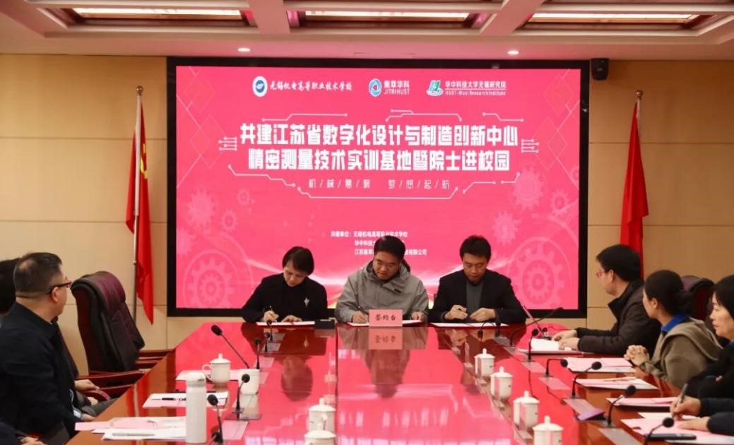 11月28日,江蘇集萃華科智能裝備科技有限公司與無(wú)錫機電高等職業(yè)技術(shù)學(xué)校共建的“江蘇省數字化設計與制造創(chuàng )新中心精密測量技術(shù)實(shí)訓基地”成功揭牌。中國科學(xué)院院士、創(chuàng )新中心主任丁漢到會(huì )致辭,無(wú)錫市教育局、工信局領(lǐng)導共同見(jiàn)證,無(wú)錫機電高職、華科大無(wú)錫研究院及集萃華科公司主要負責人參加此次活動(dòng)。